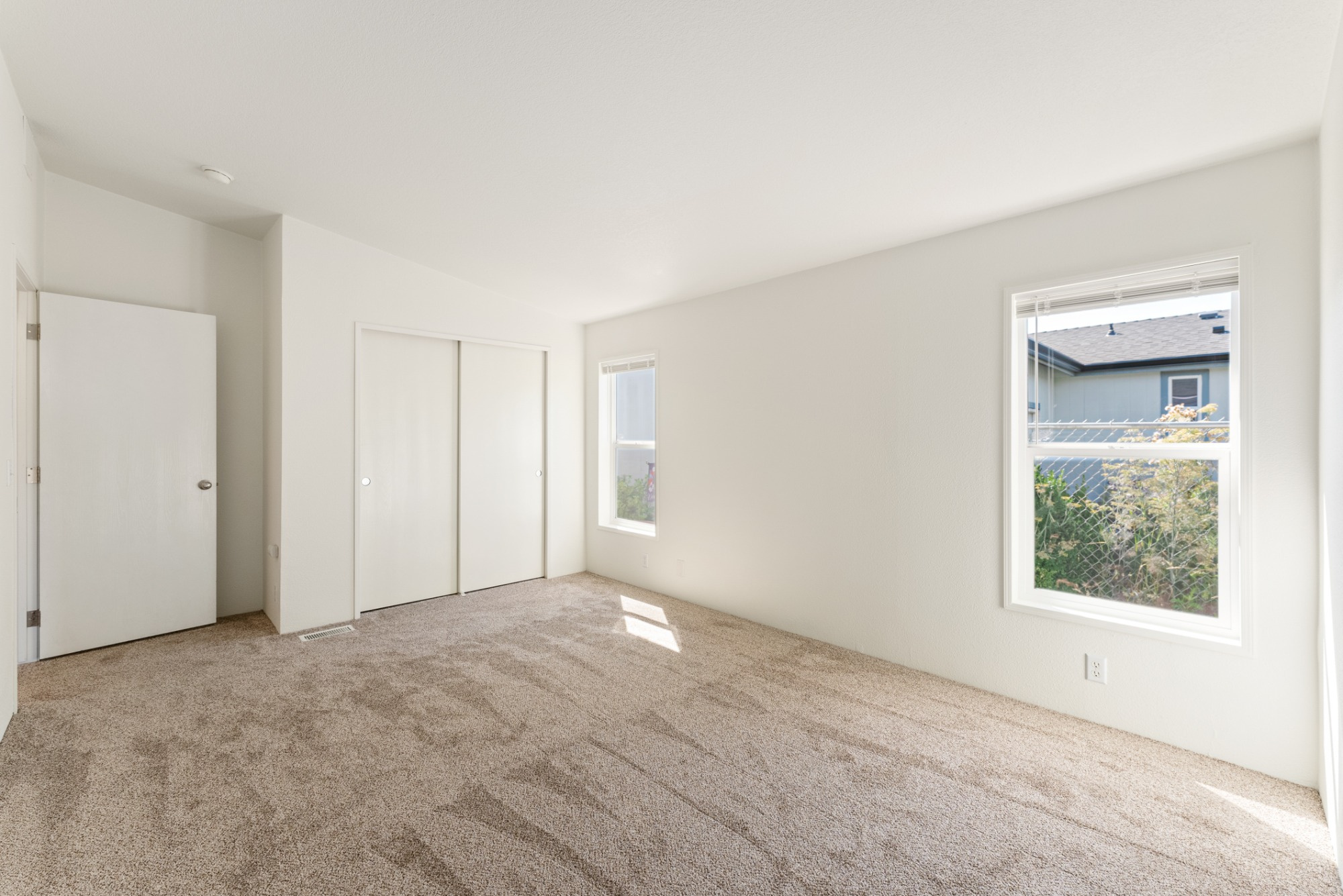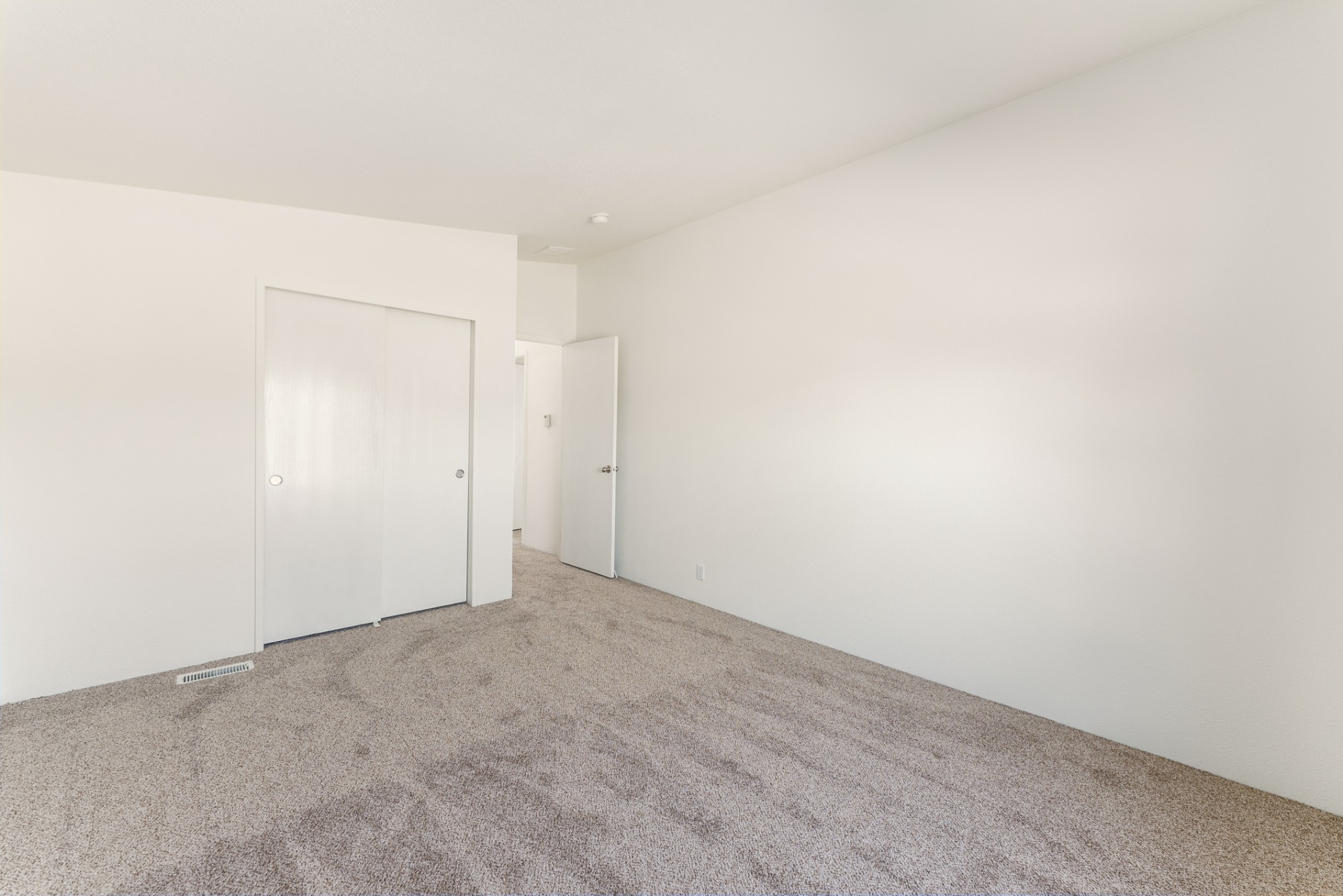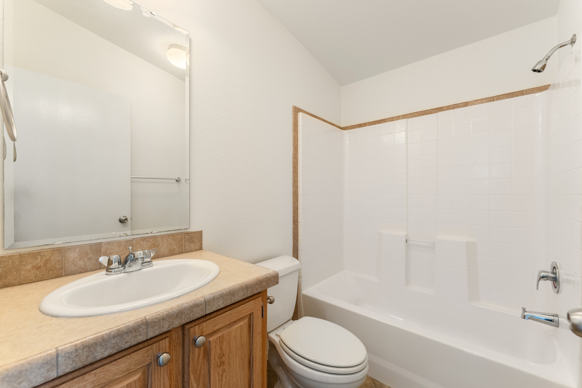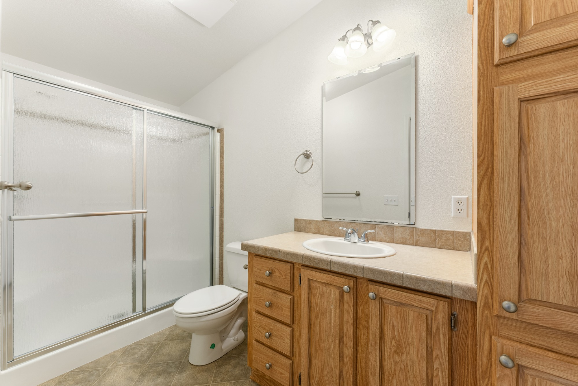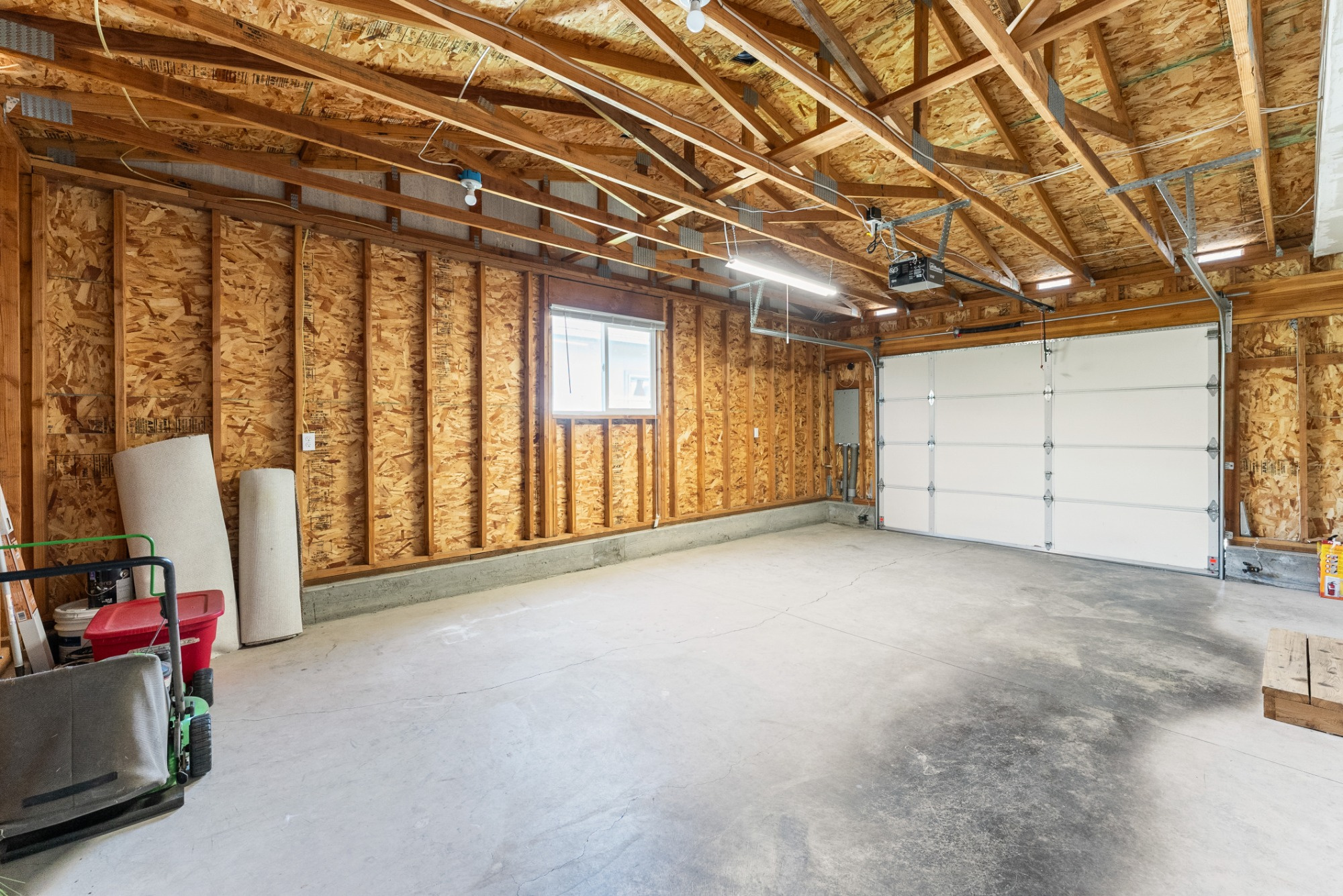 Welcome to easy living! This move-in ready, single-level home sits on a quiet cul-de-sac with a brand new roof and offers a comfortable, low-maintenance lifestyle on land you own. Inside, the great room layout with vaulted ceilings creates an open and airy feel, blending the living, dining, and kitchen areas seamlessly. The kitchen features classic oak cabinets with plenty of storage, and all appliances—including a brand new washer and dryer—are included. The home offers two bedrooms and two full bathrooms. The spacious primary suite includes an attached ensuite with a walk-in shower for added convenience. Fresh new carpet throughout adds warmth and makes the home feel move-in ready. Outside, a fully fenced yard provides space for gardening, pets, or relaxation. An attached single car garage offers secure parking and extra storage. With its updated features and easy-care yard, this home is designed for comfort and simplicity.